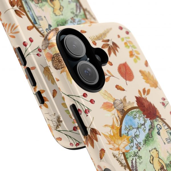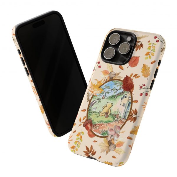 Autumn Winnie Bear Phone Case – Cute Fall Leaves Aesthetic Protective Cover for iPhone 17 Pro Max 16 Plus 15 14 13 12 11, Samsung Galaxy S25 S24 S23 S22 S21