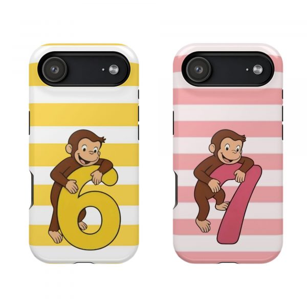 Bring playful charm to your phone with this Curious George–inspired case featuring the adorable monkey holding colorful numbers 6 and 7 against soft pastel stripe backgrounds. Perfect for fans of the classic PBS Kids TV show, this case adds both fun and personality to your everyday carry.