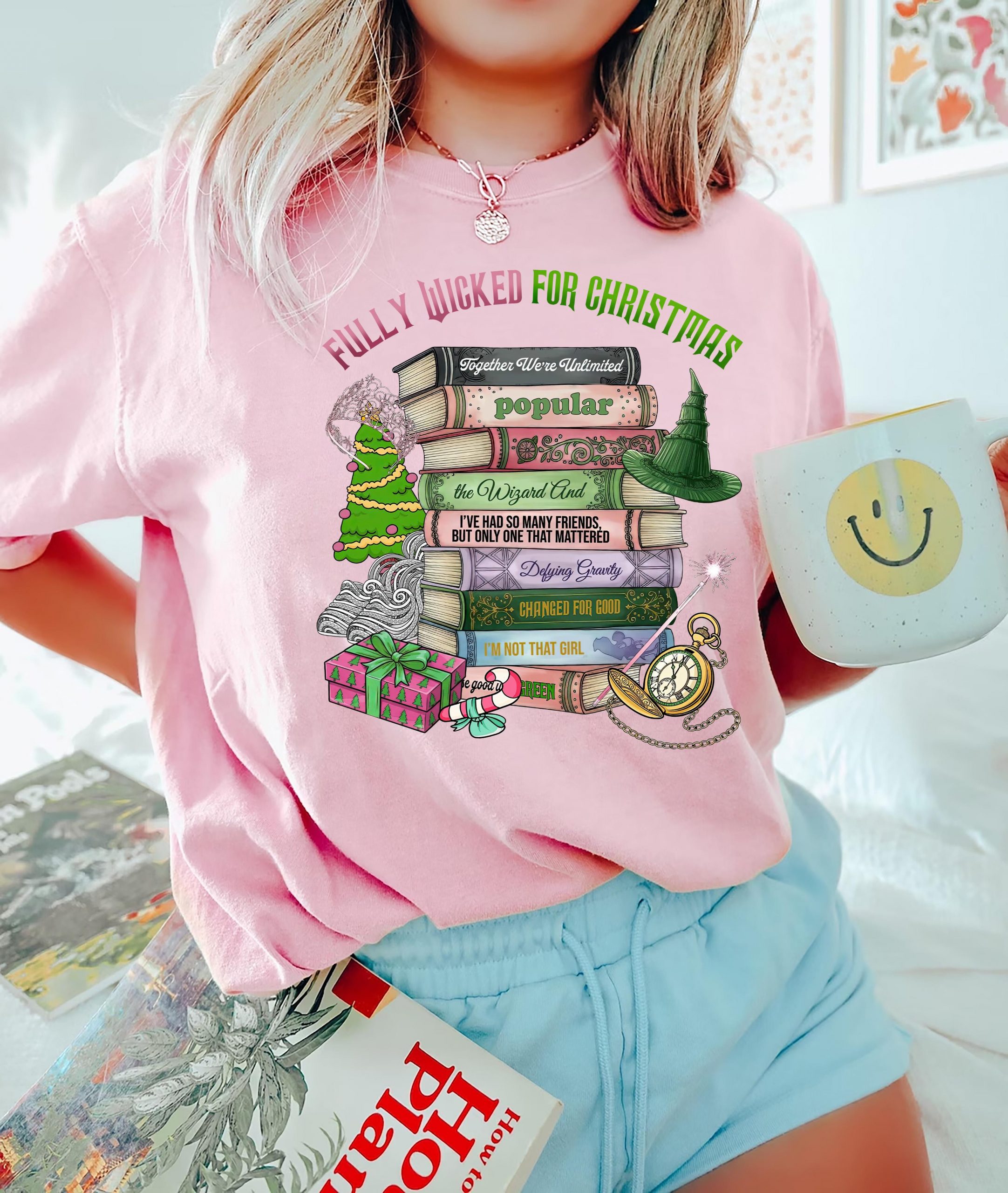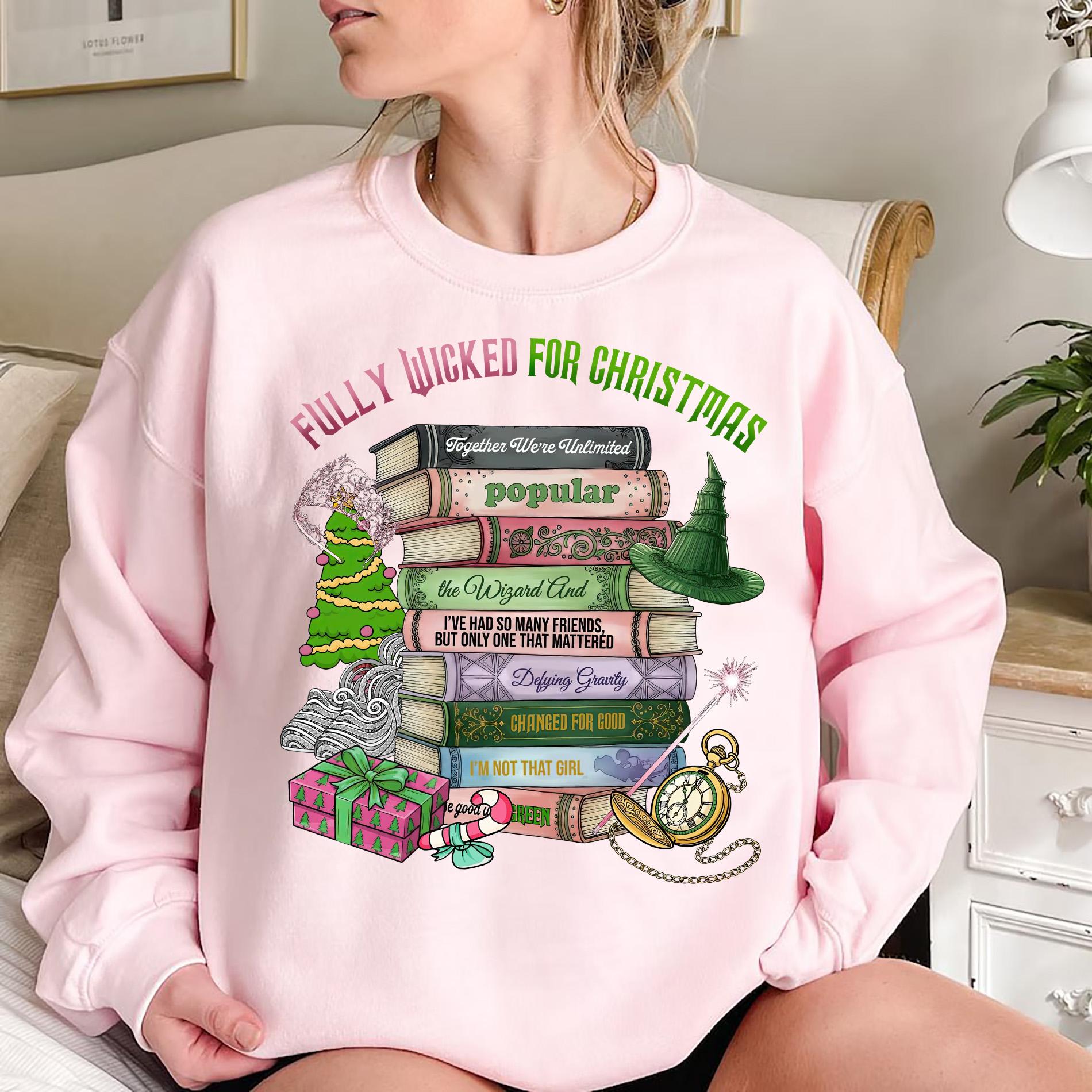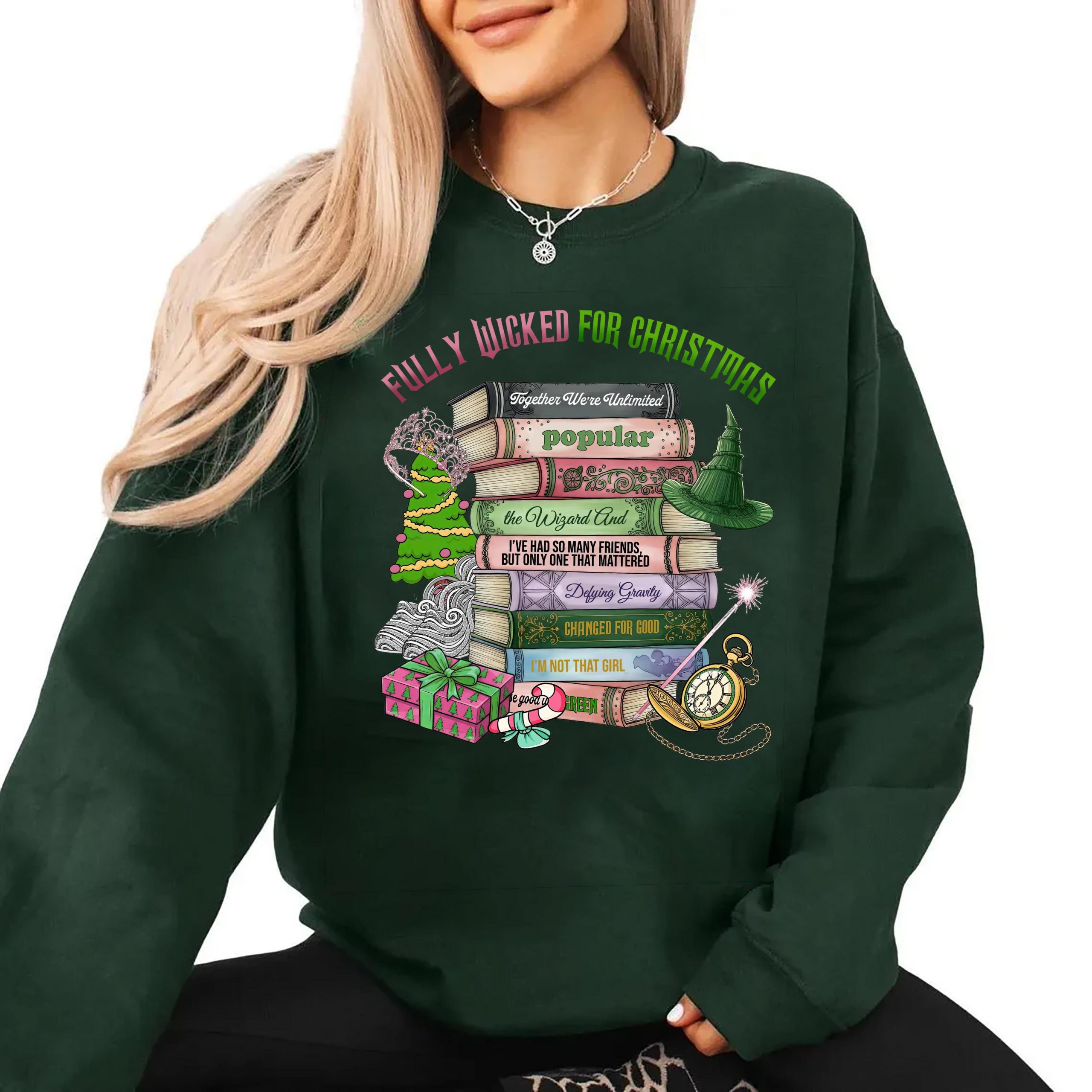 Fully Wicked For Christmas Shirt, Cute Book Lover Holiday Crewneck, Festive Reading Themed Pullover, Wicked Book Stack, Wicked Movie Shirt