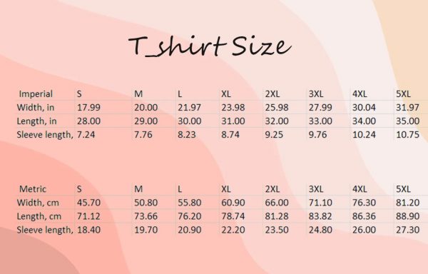 Available sizes: S, M, L, XL, 2XL, 3XL, 4XL (we also have 5XL if you request)