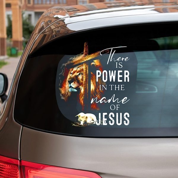 Jesus Lion of Judah Cross and Lamb There is Power in The Name of Jesus Transparent Vinyl Car Sticker