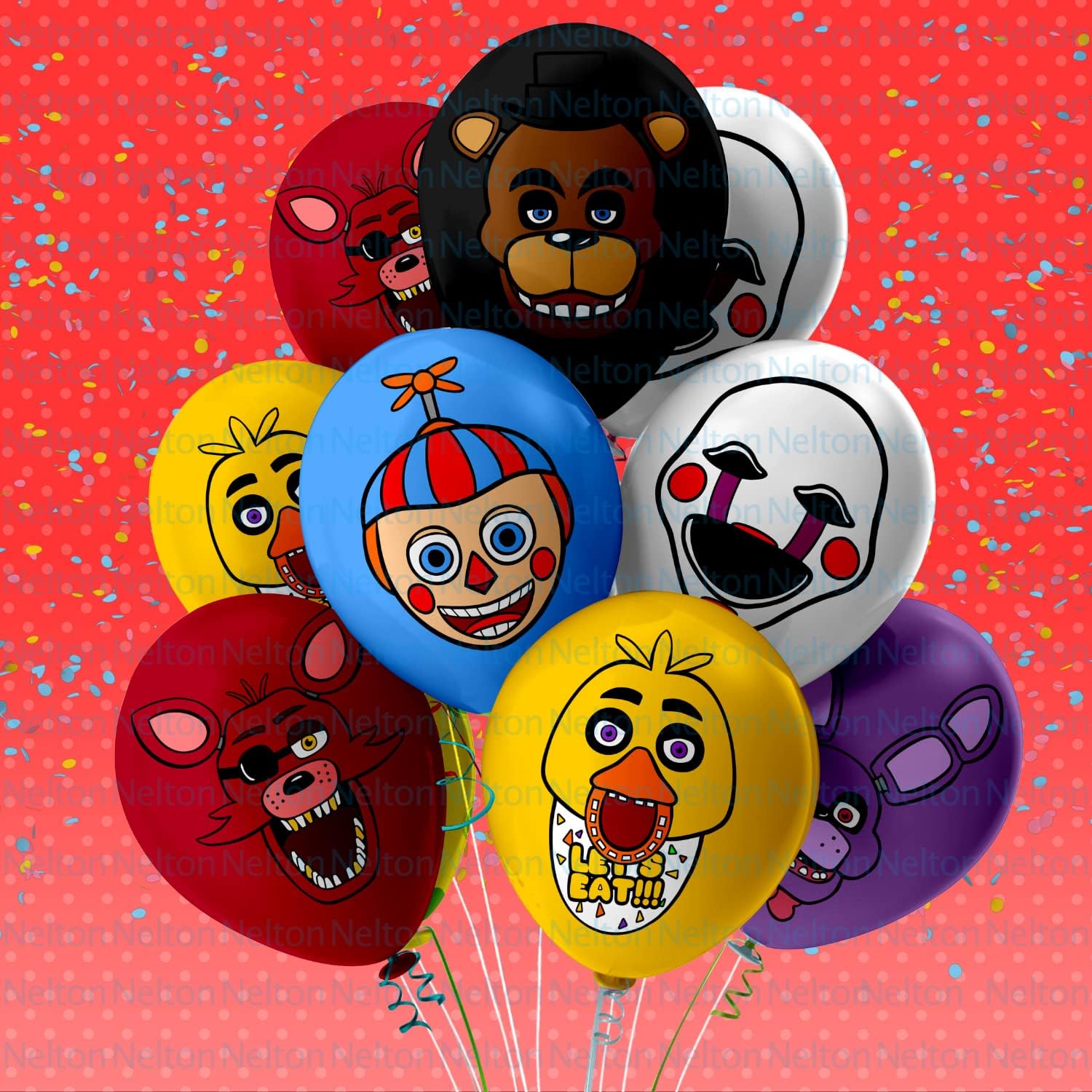 Nelton Birthday Party Supplies For FNAF Includes Banner – Backdrop – Cake Topper – 24 Cupcake Toppers – 24 Balloons – Table Cloth