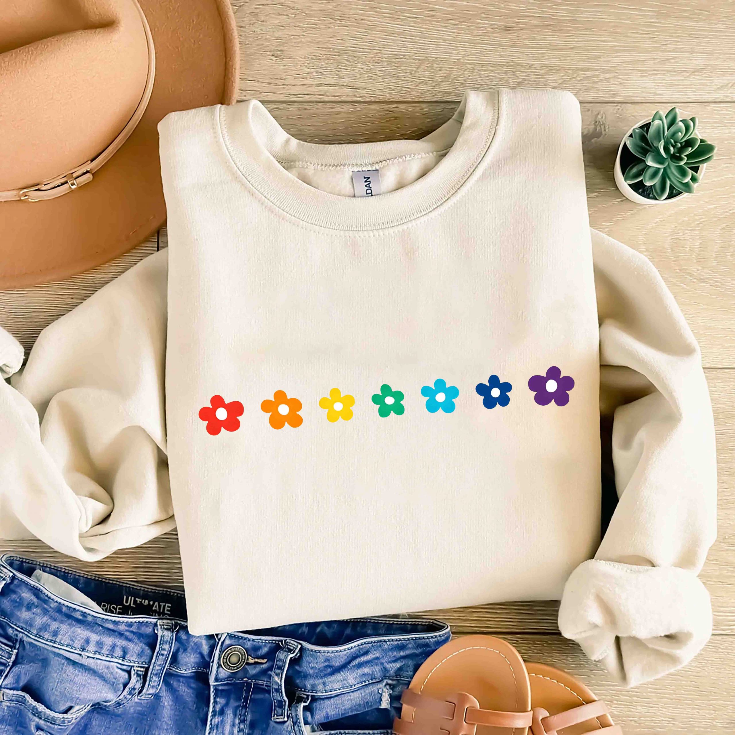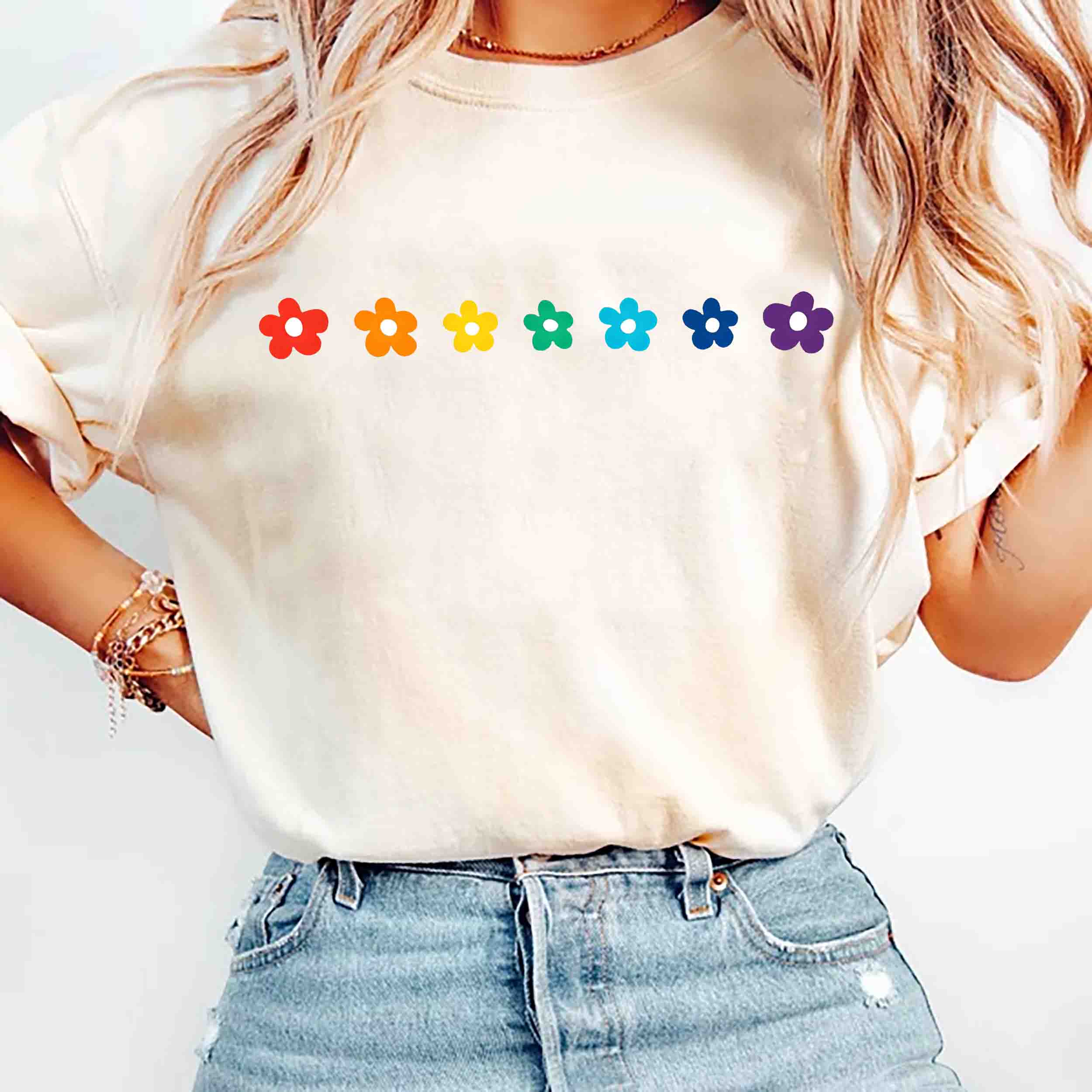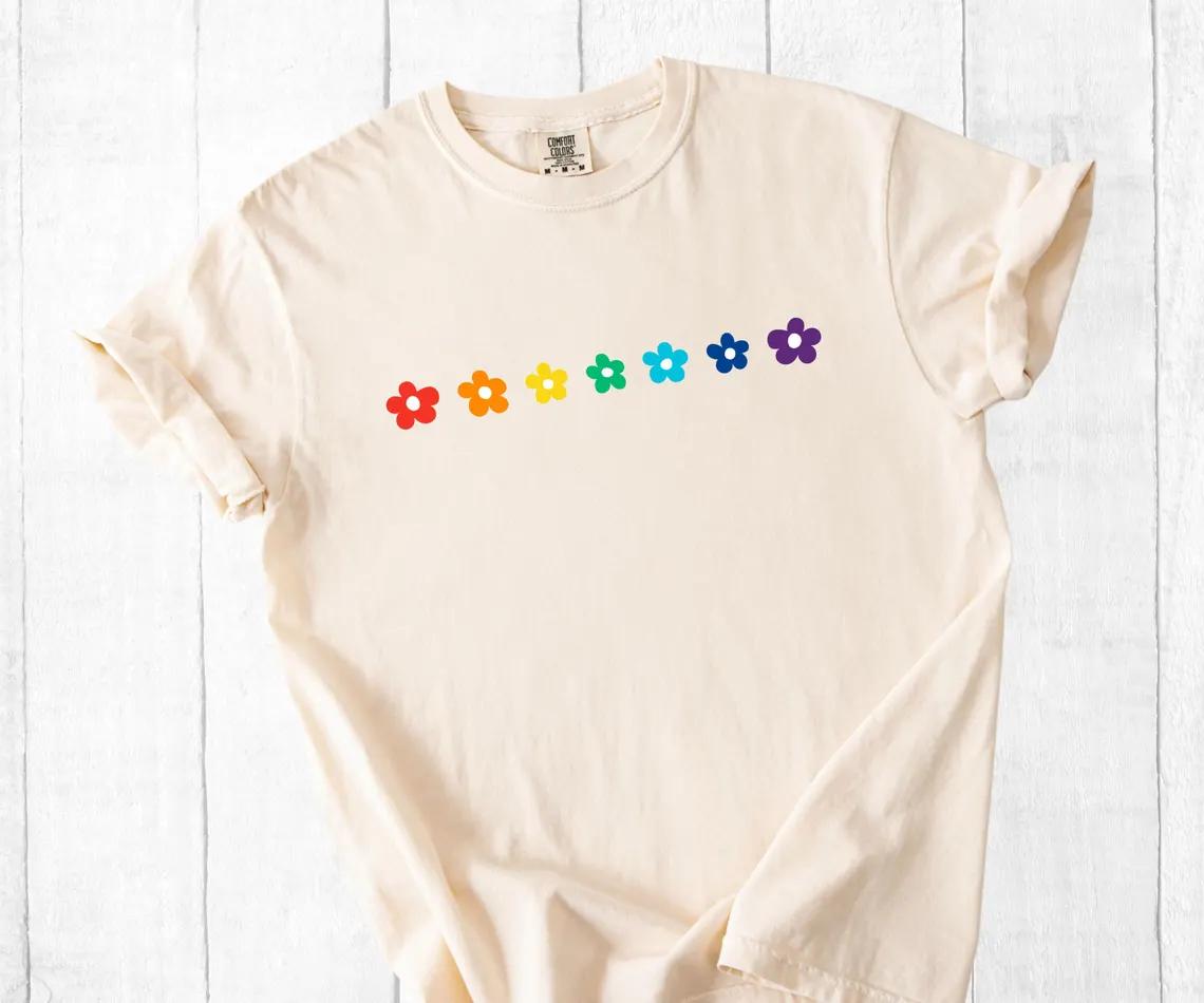 Rainbow Daisies Shirt, Cute Gay Pride Flower Tee, LGBTQ+ Floral Botanical T-Shirt, Pastel Aesthetic Queer Shirt