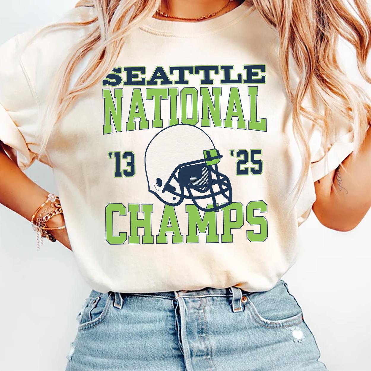 Featuring a classic football helmet graphic and bold championship lettering, this shirt is a great way to represent your love for Seattle football and the 2025 championship vibe. It’s an ideal choice for game day, tailgating events, or casual wear.