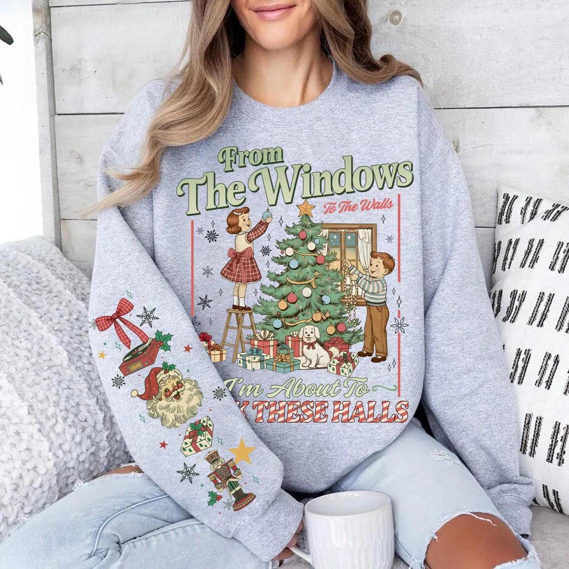 Vintage From The Windows to the Walls I’m About to Deck These Halls Sweatshirt, Funny Christmas Shirt, Retro Christmas Hoodie